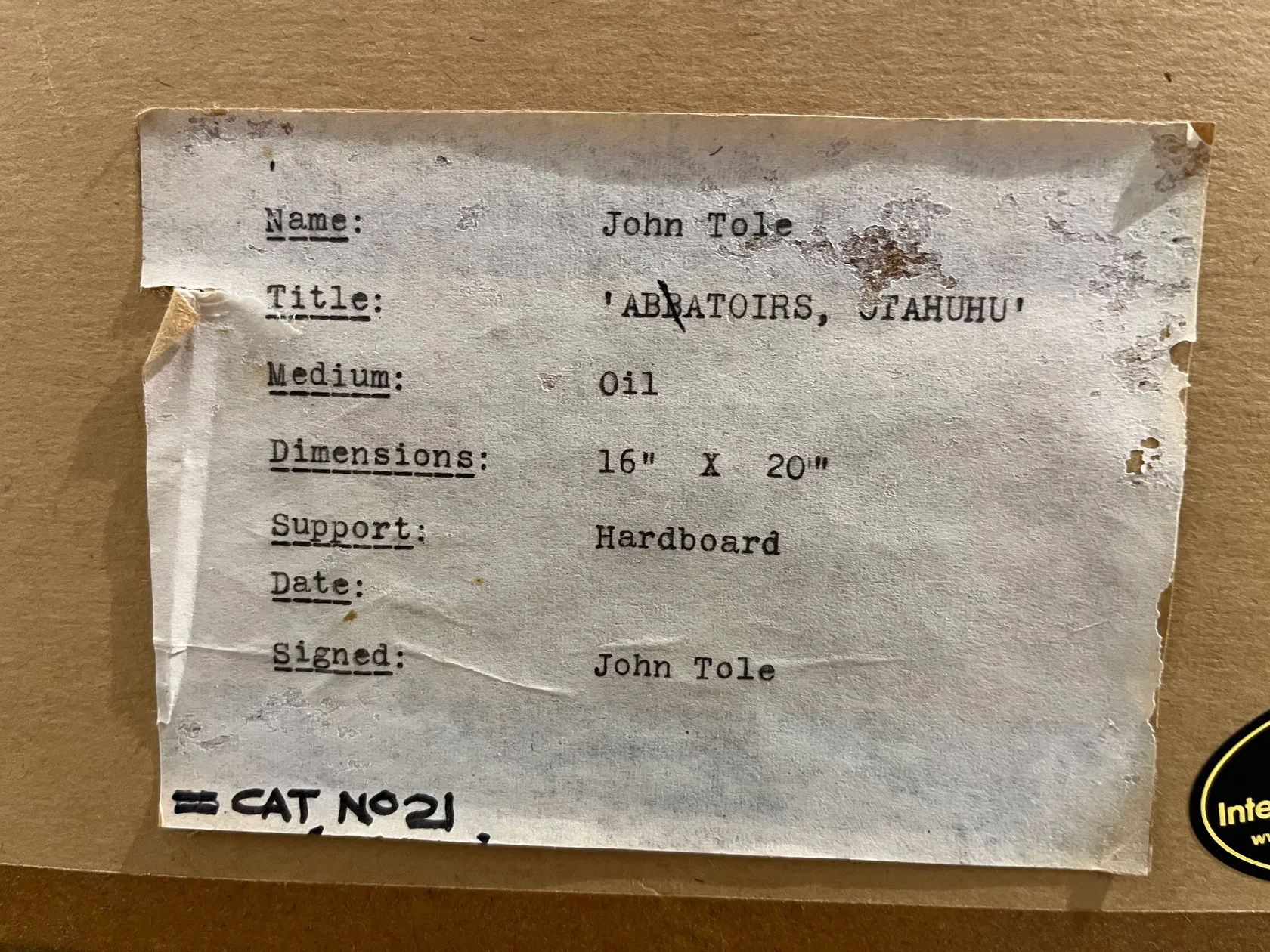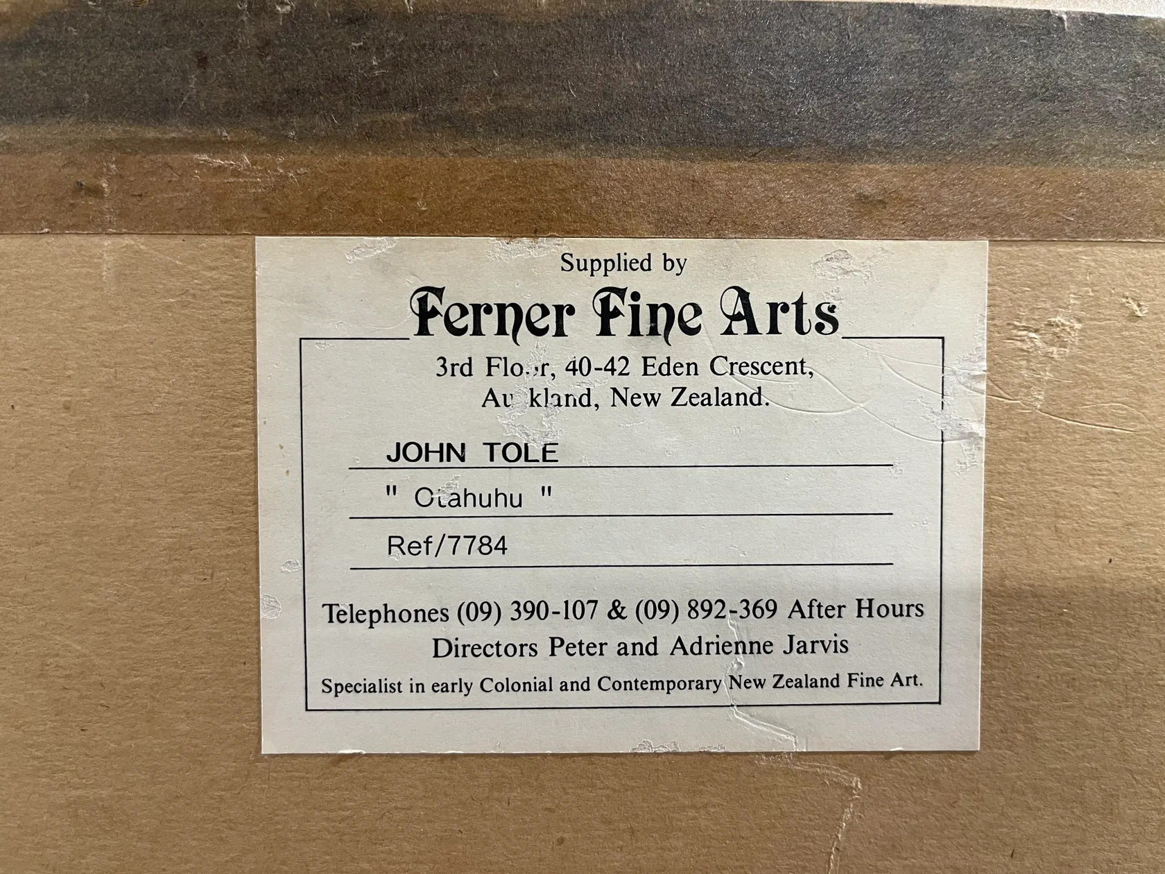 Private Collection, Auckland Purchased from John Leech Gallery, cat. no. 21 Ferner Gallery label affixed verso, titled as 'Otahuhu'