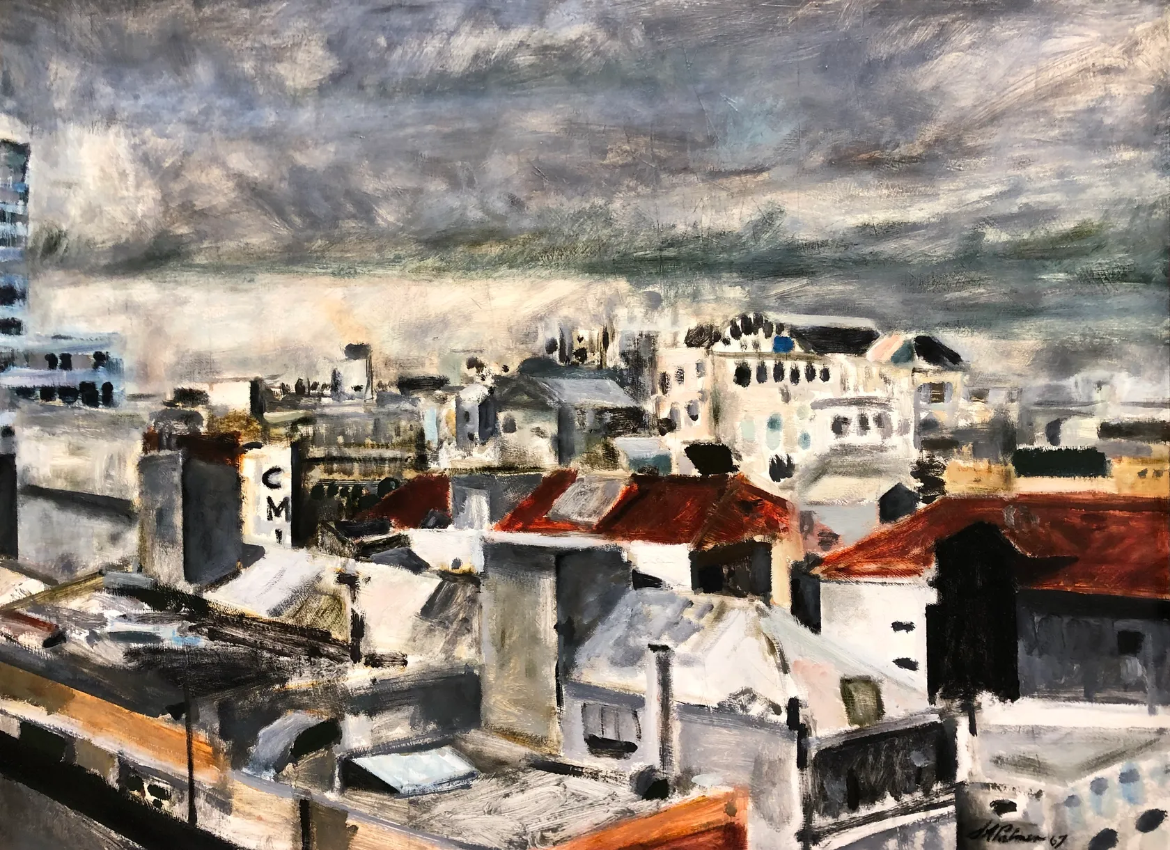 Signed & dated 1967. Inscribed City in Grey and Black on label affixed verso