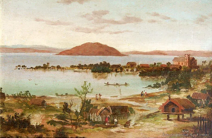 Signed & inscribed Rotorua and Mokoia Island from the Maori Settlement, Ohinemutu verso