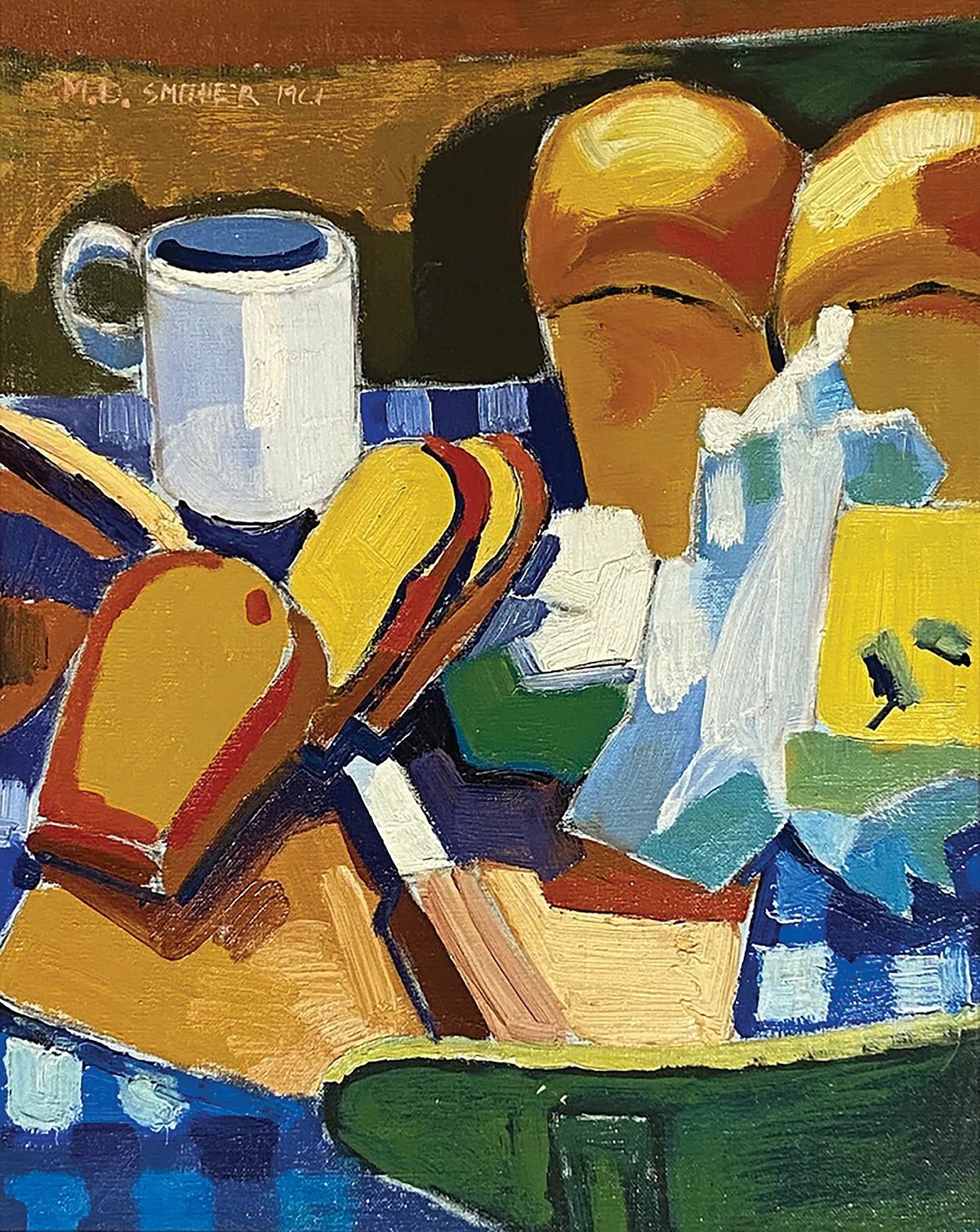 MICHAEL SMITHER (b. 1939) - Still Life with White Mug & Sliced Bread