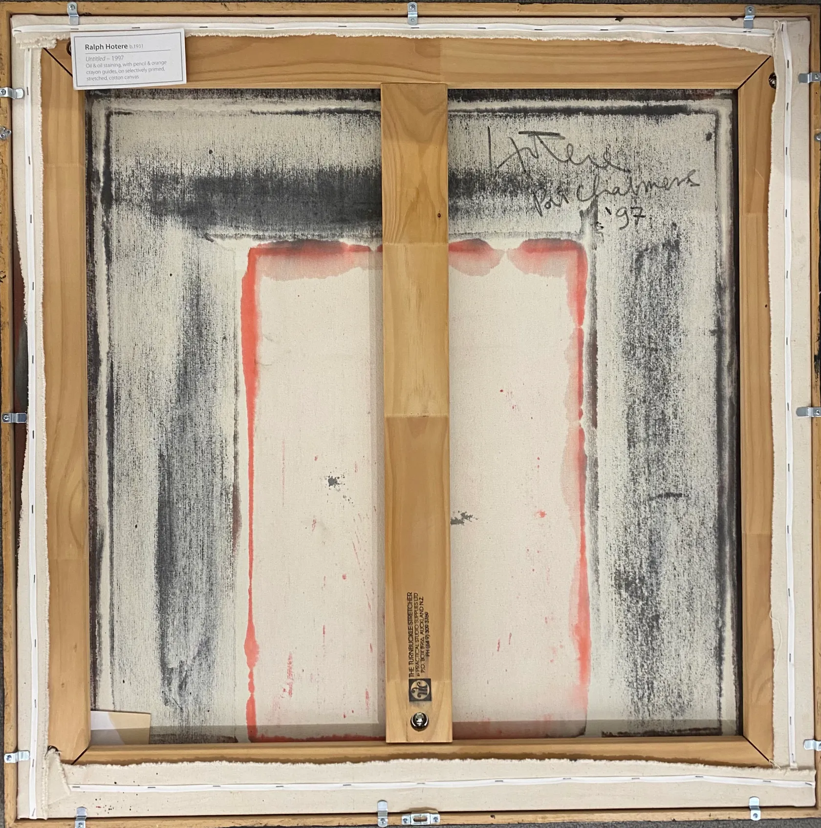 Ralph Hotere (Te Aupōuri and Te Rarawa) was born in Mitimiti, in the Hokianga, and studied at the Dunedin School of Art, becoming one of Gordon Tovey’s chosen Education Department arts advisors in the Bay of Islands. In 1961, a New Zealand Art Societies Fellowship supported his study at the Central School of Art and Design in London and subsequent travel in France and Europe, before he returned to New Zealand in 1965. His overseas travel coincided with the ascendancy of Abstract Expressionism, and in particular, Colour Field painting which was characterised by large areas of stained canvas, where paint was applied to unprimed canvas to create the kinds of areas of flat saturated colour seen in this work.