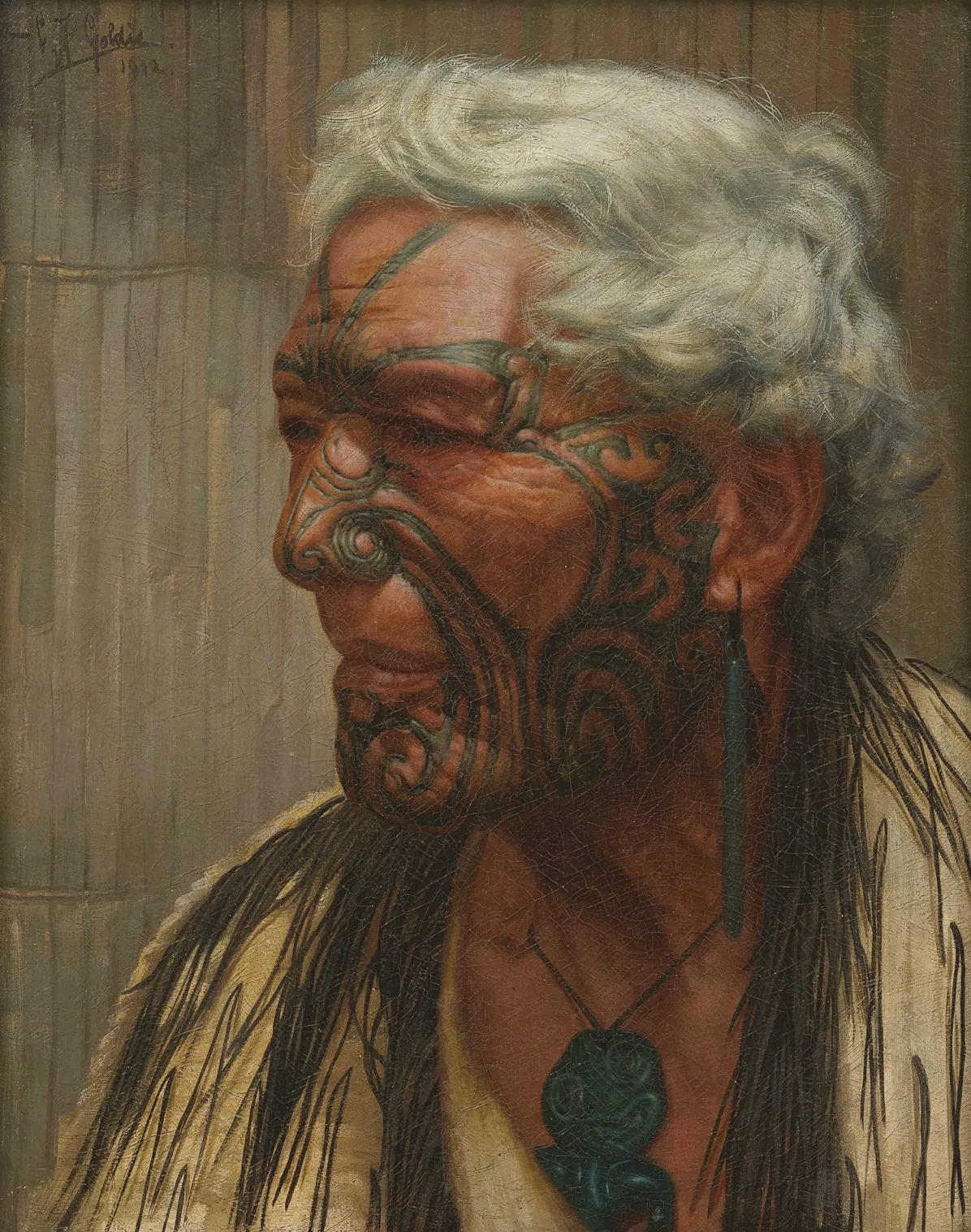 From 1900, Goldie devoted himself to painting elderly Māori whom he regarded as custodians of ancestral knowledge. His field trips to Rotorua and Northland brought him into contact with many of his key subjects, whom he painted repeatedly over decades. His intent, as he described, was to record their likenesses