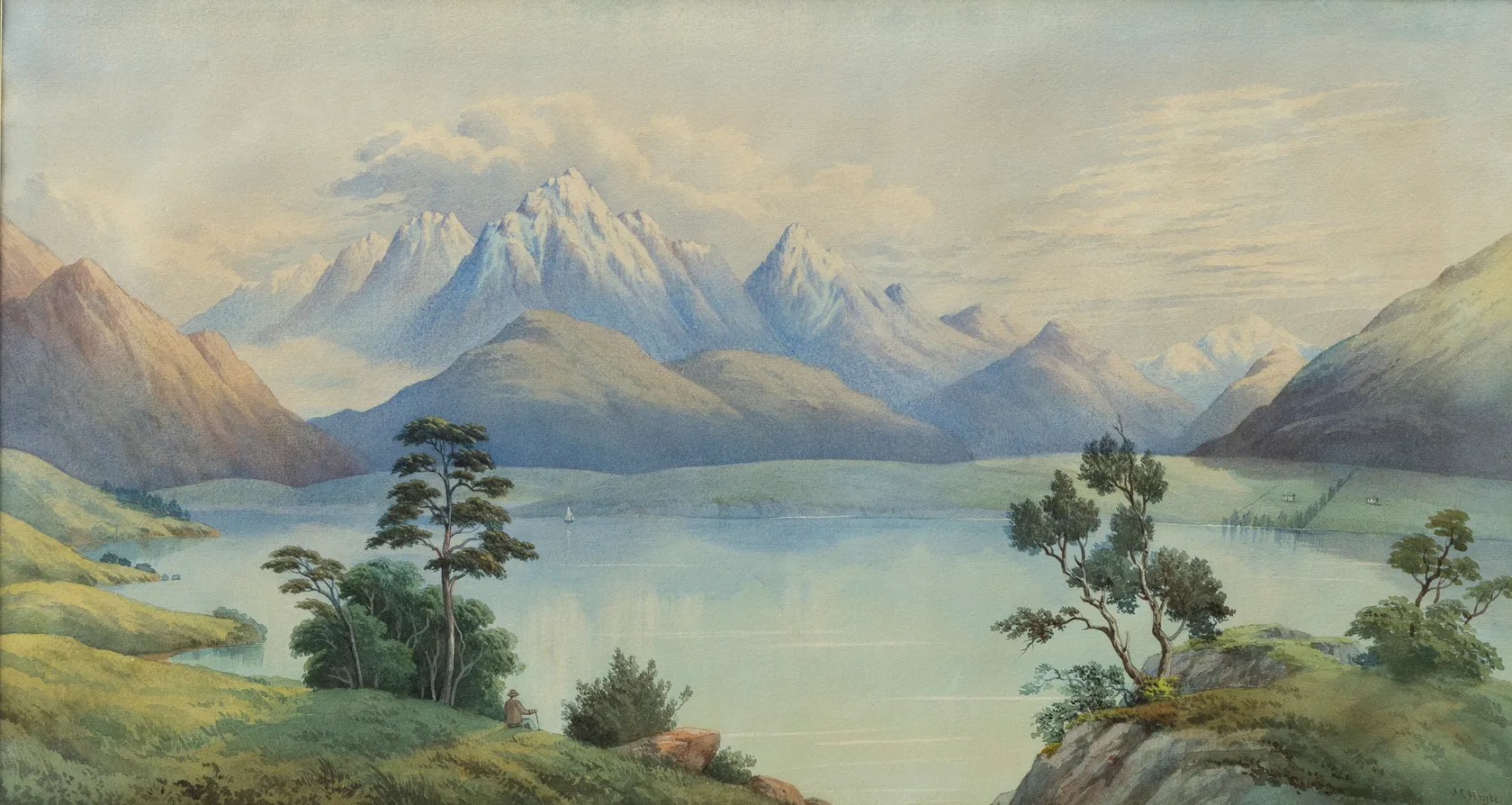 Southern Lake Scene with Seated Figure
