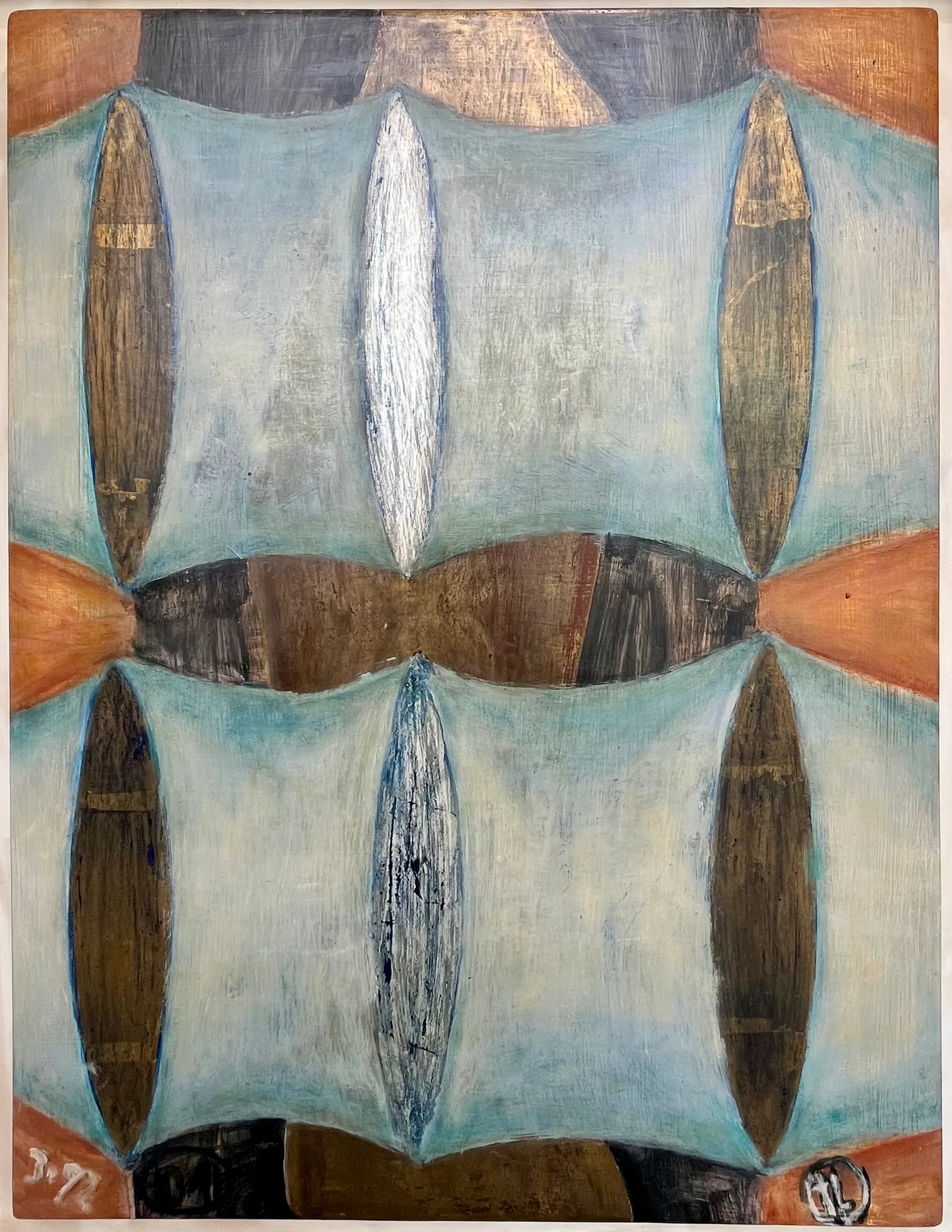 Schlagmetal, Aluminium Leaf + Oil Paint on Gesso Panel