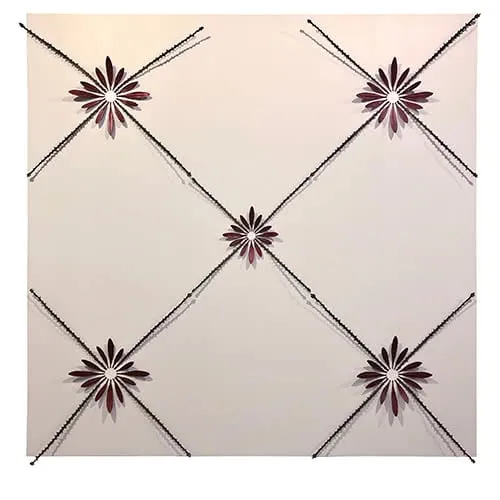 Cast bronze in 80 pieces arranged in 5 rosettes, mounted on gesso on board