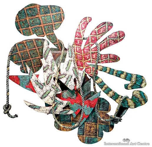 Oil, enamel on customwood and rope