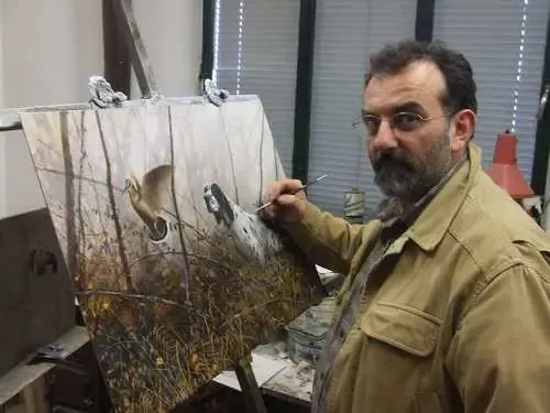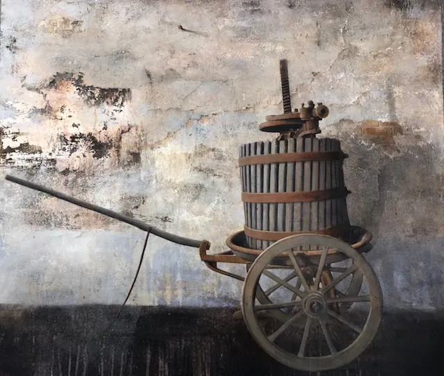 Andrea Mazzoli lives in the Friuli-Venezia region of north-east Italy. His small village, nestled amongst the mountains of Val Colvera is listed as one of the most beautiful in Italy. It is from daily village life that Mazzoli draws his inspiration. Having mastered a unique, mixed-media technique enabling him to re-create the textured appearance of stone and plaster walls he uses this as the backdrop in many of his works. His paintings focus on capturing both the natural world and rural architectural as seen in his Portal Series featuring iron-worked doorways and shuttered windows.